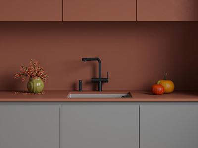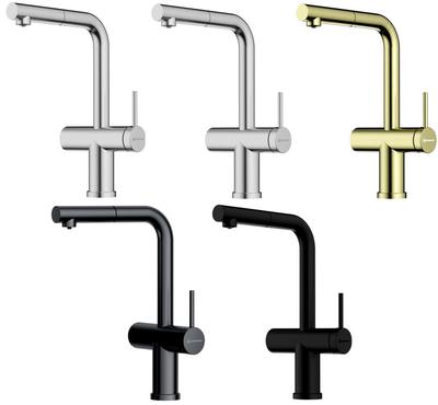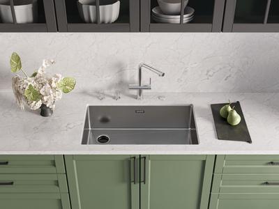 Прекрасно сочетается с мойками из композитного материала, акрилового или натурального камня, нержавеющей стали или керамики