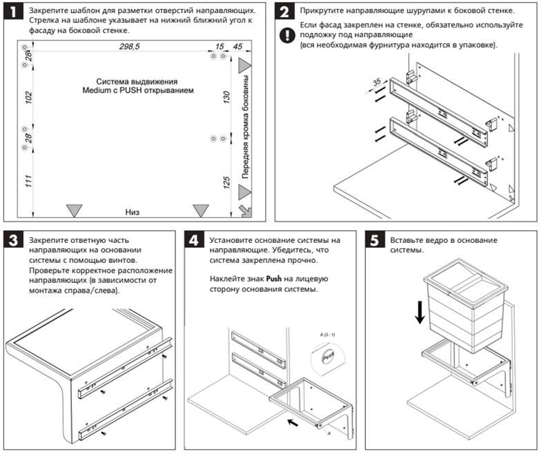 Мусорная система Hailo Medium-Push выдвижение от нажатия